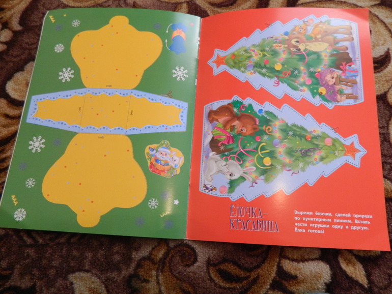 "Дед Мороз". В книжке можно вырезать картинки для гирлянды или елки, коробочку и елку. Ну и наклейки еще.