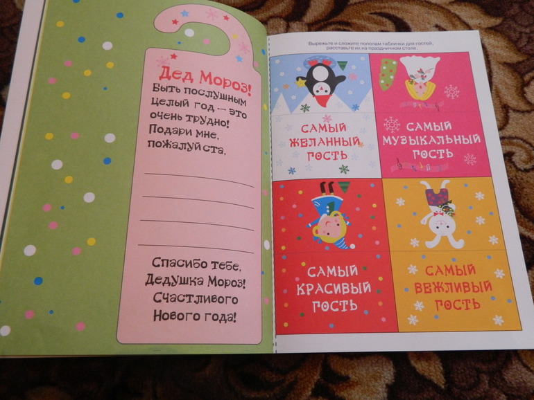 "Как стать помощником Деда Мороза". Тонкая книжечка с интересными заданиями и наклейками.