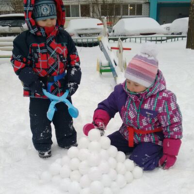 для моторики рук у нас куча занятий дома!!! Да и тут тоже не все так легко, клешнами тоже надо научится ловко управлять, чтобы снежки ровные и красивые получались!!! Моторика еще лучше работает.