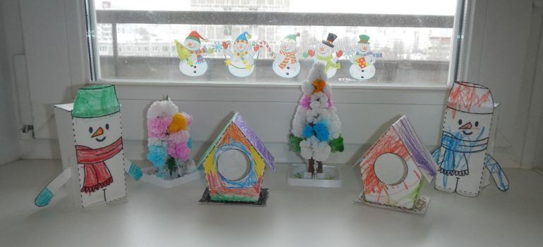 Ну а в воскресение мы доделывали наши новогодние поделки в садик (пост):