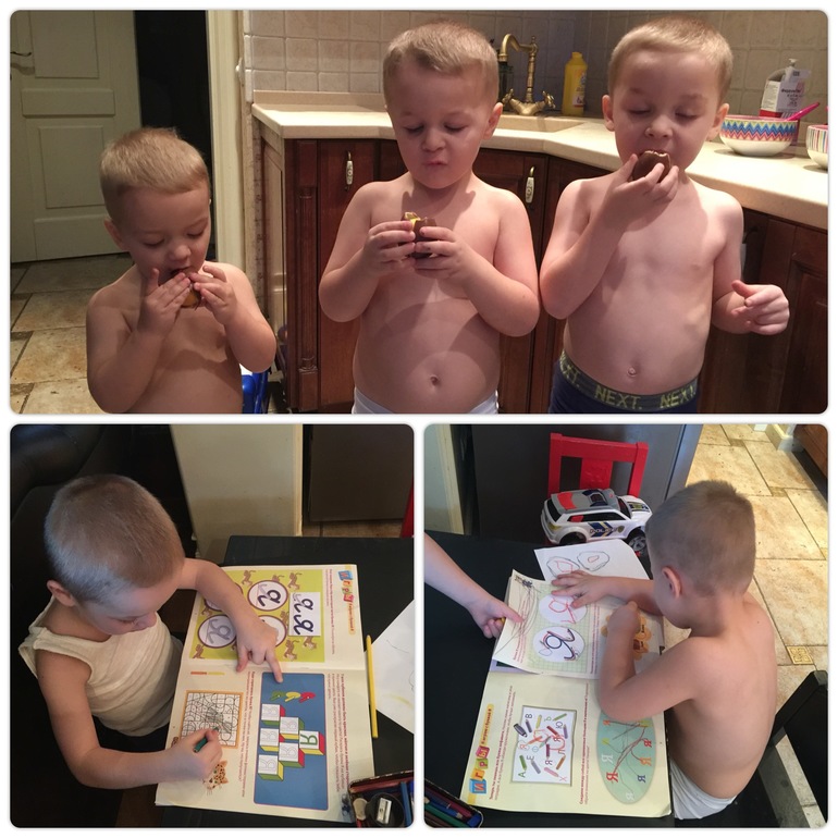 9. З - застолье, зимовье зверей (двойняшки посмотрели одноименный мультфильм, пока я укладывала Артема на дневной сон), зима. Дед Мороз принёс сегодня новогодние наклейки, сделали из них зимние аппликации, а прочитав в "веселой азбуке" про зебру Зою, ещё и испекли кекс "зебра"