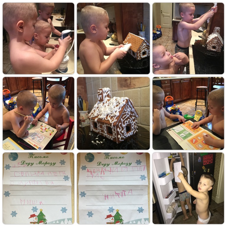 16. П - пурга, подарки, праздник, поздравления, печенье, пряник. С самого утра занялись делом: смололи сахар, приготовили глазурь и склеили наш пряничный домик. Хорошо, что домик купили готовый, а то бы за один день не управились) а пока ждали, как домик схватится, написали Письмо деду морозу и спрятали в холодильник))