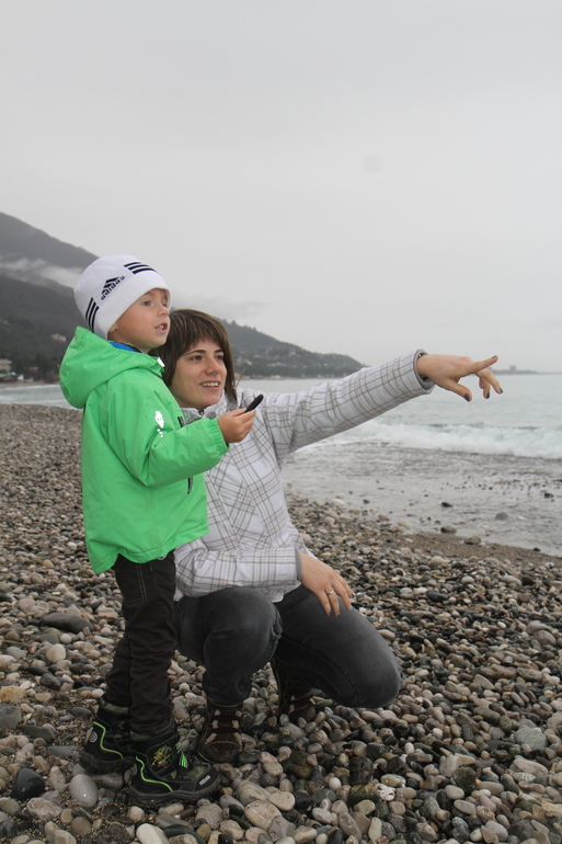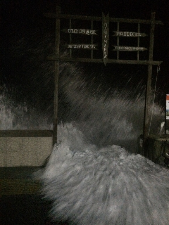 Стационарный навигатор всего этого хозяйства не знал, поэтому упорно нас разворачивал на "дорогу", показывая, что в данный момент пути мы бороздим горы, а порой даже и море ))) Море. После двух дней пути, закидывания вещей в номера маленького гостевого дома, мы прямиком отправились на море, поскольку проезжая вдоль него по серпантину оно уже манило нас огромными волнами. Волны на пляже Адлера были шикарные!!! Высоченные, метров по пять и добирались через весь пляж прямо до прогулочной зоны, заливая ее водой.
