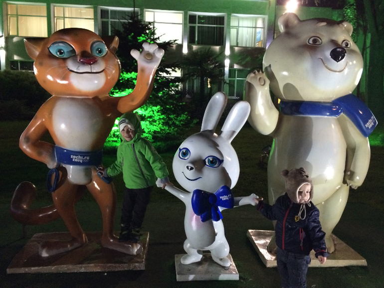 Вечерняя прогулка под дождиком в +16, и исследование талисманов 22 Олимпийских игр