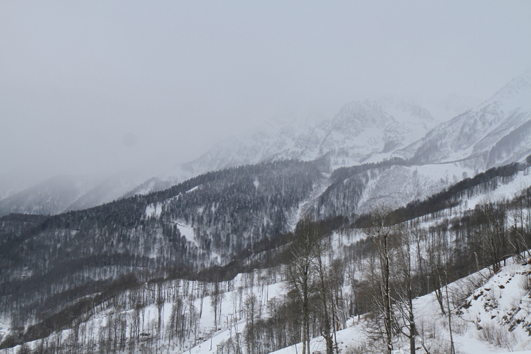 29/12 Первым делом разумеется Красная Поляна. На машине ехать минут 20, дорога хорошая. Да чего уж там, отличная дорога. На пути постоянные напоминания, что без зимних шин в горы ни-ни. Понятное дело, большинство сочинцев знать не знают что такое зимние шины... В низовьях горного кластера народу не много, и честно говоря глаза разбегаются хочется успеть везде и всюду. мы остановились на основных подъемниках Роза Хутор (хотя я до сих пор очень хочу увидеть все олимпийские объекты). Катающихся много (хотя как мы потом узнали, это еще фигня). Очень много новичков и детей, отлично там все для начинающих устроено- но Михе мы снаряжение не брали. Отлично погуляли, но свежий воздух разгонял аппетит только так. Сесть покушать наверху было без вариантов- народу не протолкнуться в единственной кафешке наверху. Погода слегка нам не благоприятствовала, многие подъемники в горах были закрыты то из-за ветра, то из-за моросящих дождей и угрозы обледенения, но на горах Сочи не заканчивается- внизу тоже масса интересного.