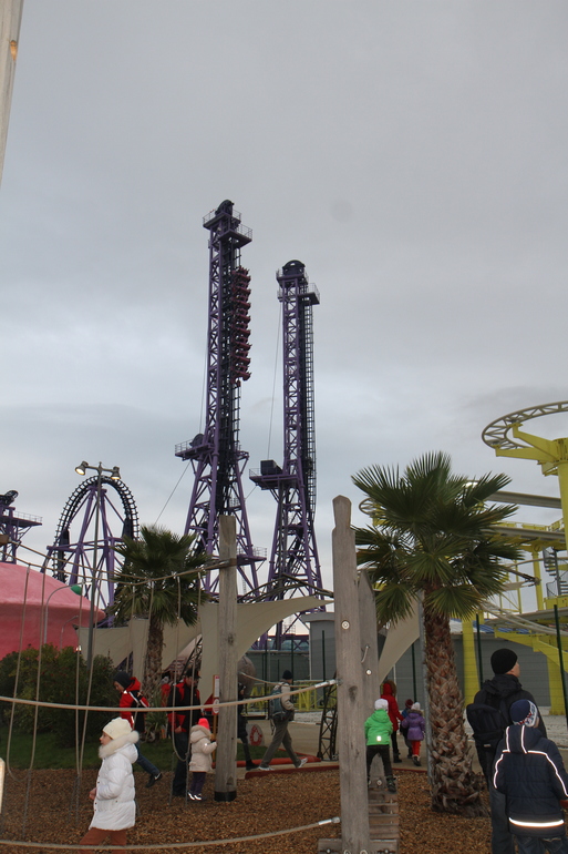 2 января. Ждать у моря погоды мы уже были не в состоянии, да и дорога домой уже близится, так что не откладывая отправились в "Сочи парк", парк развлечений для детей и взрослых. Входной билет на взрослого стоит 1500р, дети до 5 лет бесплатно. После входа ни за один аттракцион ты не платишь, катаешься сколько хочешь, где хочешь. Ограничения только по росту, весу и возрасту на различные карусели. Где-то соблюдаются строго- на два Миху не пустили поскольку рост меньше 120, где-то допускаются разумные послабления. Ясень пень, шкета, типо Михи на американские горки никто не пропустит.