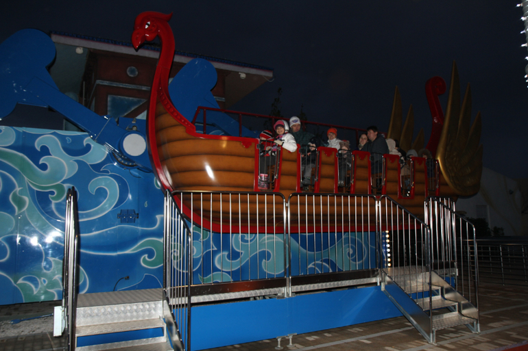 Летучий корабль. После всех взрослых аттракционов этот мне показался самым впечатляющим. Скорее всего потому, что после проката можно не вылазить и три порции подряд мой желудок здраво воспринимать отказывался.