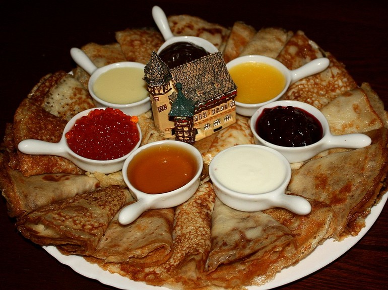 2. Стол: конечно, блины, варенья, мёд, фрукты и тп.
