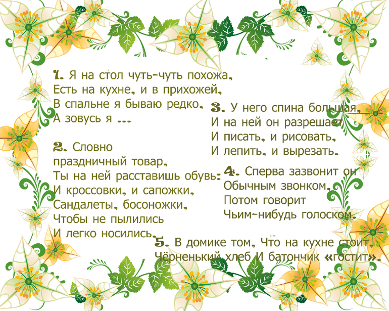 - собрать цветы по квартире одного цвета, отгадывая загадки