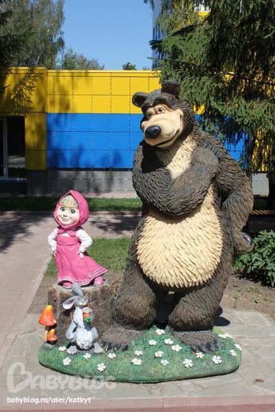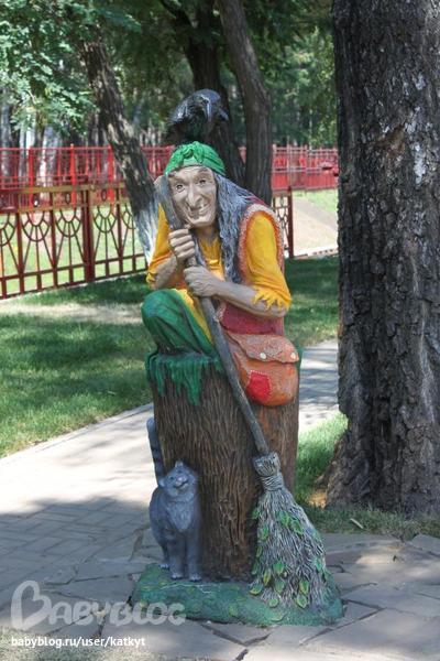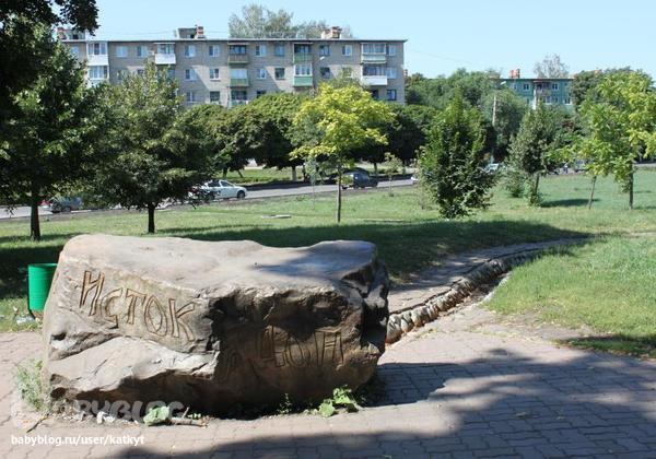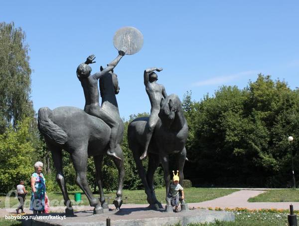 Скульптура (олицетворяет реки Шат и Дон, которым суждено расстаться, как только кончится детство) находится в начале парка (Скульптор Смирнов и архитектор Сыромятников):