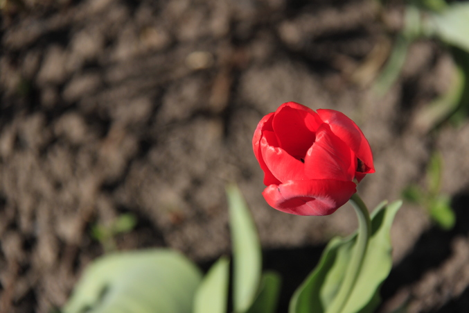 у мамы вылез мелкий тюльпаненок и расцвел! один-единственный, остальные только-только бутоны выпустили :)