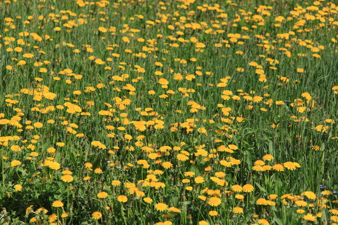 Вот такой ковёр из одуванчиков у нас был. Жалко, что муж скосил. Но для кого-то красиво, а для кого-то размножение сорняков :)