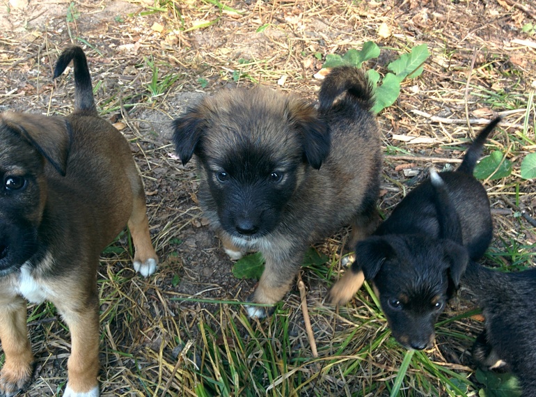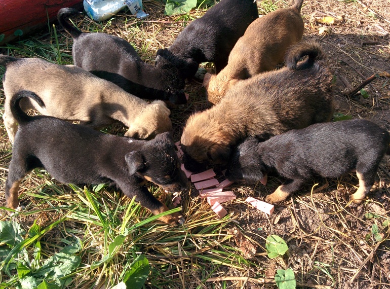 В субботу выехали в лес, чтобы пожарить кур. крылышки, нашли щеночков. Накормили (кушают самостоятельно). Вчера и сегодня вот ездили опять кормить, поить.