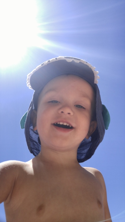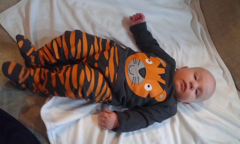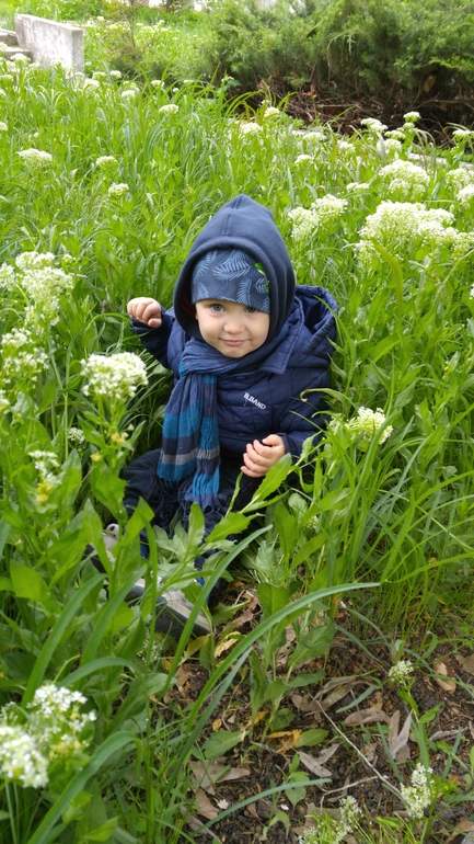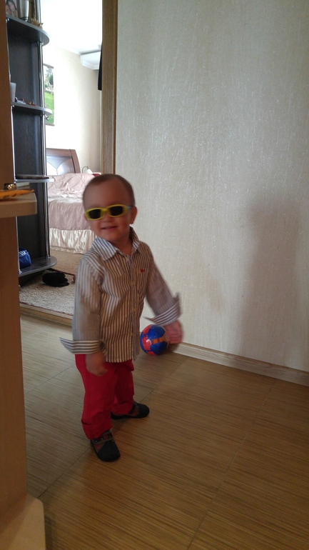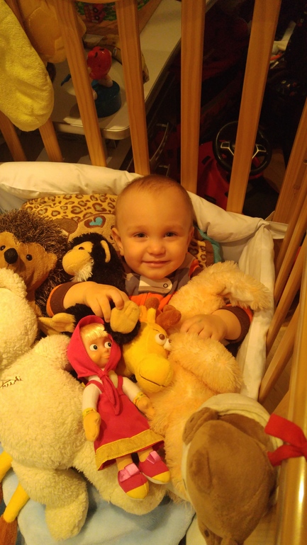 Так как чувство страха и самосохранения у него слабенькое, ничего не боится, лезет везде и всюду, прыгает с высоты, уже сальто на полу дважды делал с разделу через подушки...благо все хорошо закончилось...
