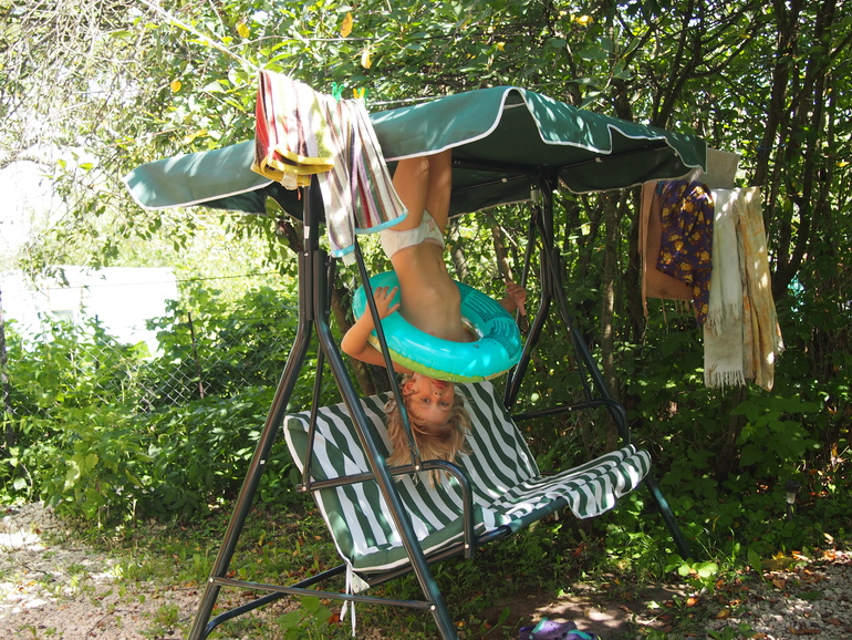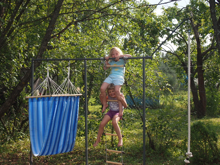 Посмотрела в свой дневник и поняла, что оказывается давно туда ничего не писала. Для истории. Дачной молодежи батут за столько лет уже приелся и пришлось папе проявить фантазию Вот что получилось: