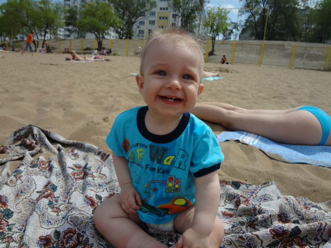 Ходим по утрам, пока не сильно жарко. Вода еще холодная, но ножки уже мочим. Я уже обгореть успела. А сын теперь смуглый.