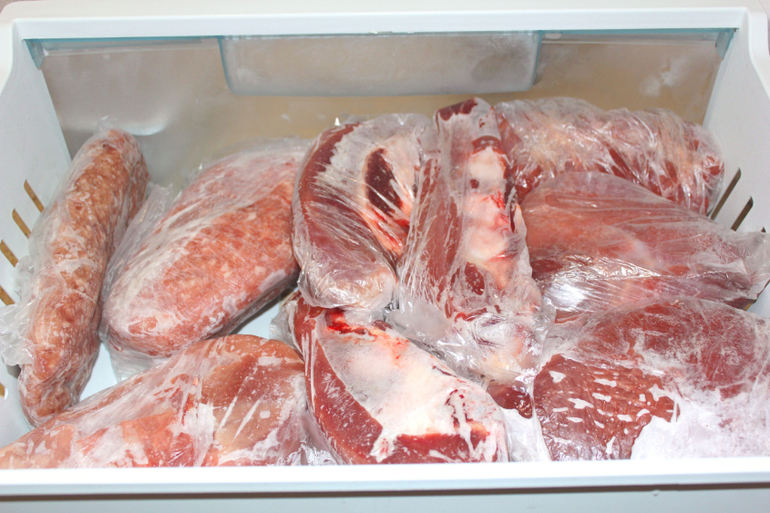 В целях экономии времени приготовления пищи, можно заранее приготовить мясные полуфабрикаты. Рассортировать по категории все мясо: грудинку разложить по мешочкам, из нее выйдет отличный борщ или щи, куски мякоти пойдут на гуляш и жаркое, котлетное мясо подойдет для котлет. Фарш готовлю сама. Обычно я делю фарш на две части. В одну часть добавила соль и перец. Из этого фарша сделала фрикадельки для супа. Во вторую часть добавила хлеб, лук, черный молотый перец и яйцо. Этот фарш будет хорош для котлеток. Все приготовленные полуфабрикаты (котлеты, фрикадельки) я выложила на разделочные доски и отправила их в морозильную камеру. Когда полуфабрикаты застыли, выложила их в пластиковые контейнера и, обернув пищевой пленкой, поместила в ящики морозильной камеры. Все встало на свои места. Остается только жарить, запекать и варить. Вот так!