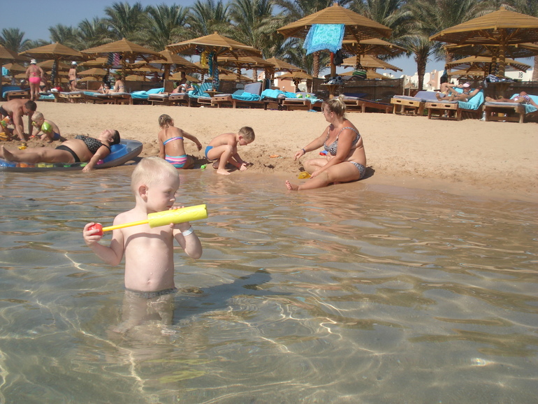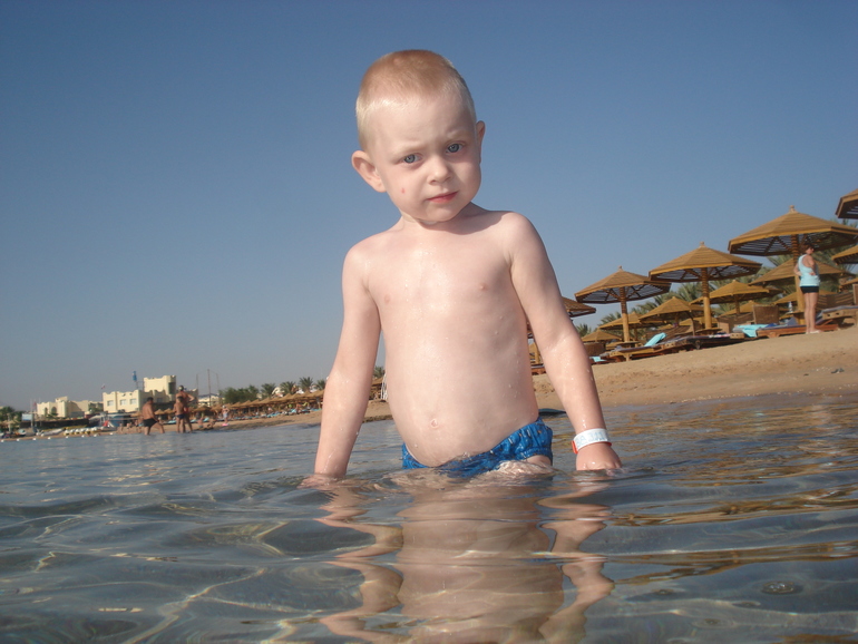 верещал на весь отель когда мы с ним заходили в воду. И только три последние дня мы перебороли его страх и уже не могли его вытащить из воды.