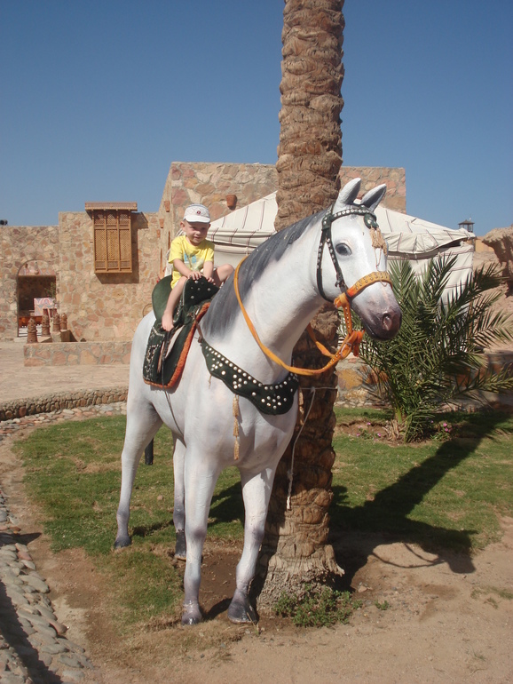 Сестренка же приехала отдыхать по полной и мы виделись практически только на ужине. Поэтому можно сказать, что я одна отдыхала с ребёнком. В те же редкие момент, когда мы встречались на пляже-она загорала и, когда я попросила 10 мин посидеть Алешку с тетей на шезлонгах-он потерялся) Благо, я об этом не знала и когда пришла, все уже было в порядке. Он ушел, когда сестра закрыла глаза, но вернулся сам и принес мячик. Как оказалось-украл в местном магазинчике)-но мы вернули, сказав, что мы честные русские и нам ничего чужого не надо. Я его спрашивала - где взял?-молчит же. Тогда сказала положи на место-и он понес). А ещё мы кормили верблюда яблоками.
