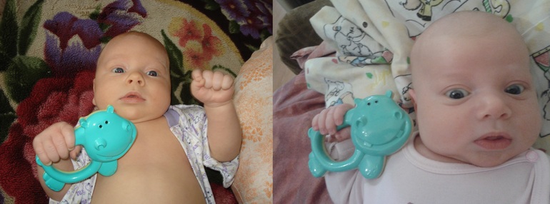 А тут наоборот Андрею(справа) 3 месяца, а Алешке 2