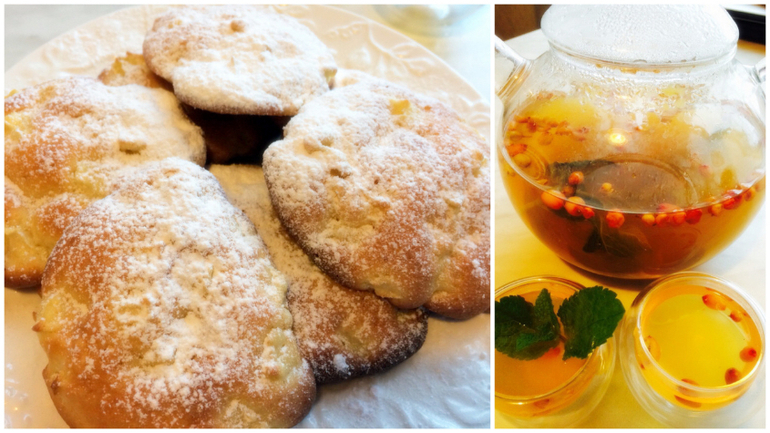На обед японские вкусняшки, яблочное печенье и чай с облепихой..