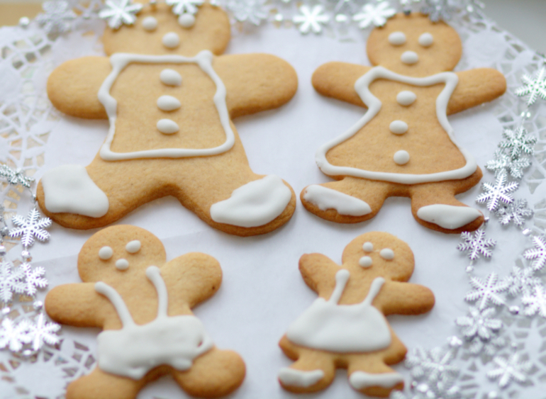 Духовку разогреть до 180 С, противень выложить бумагой для выпечки. Тесто припылить мукой и раскатать толщиной 3-5 мм. Вырезать формочками человечков или другие фигурки и разложить их аккуратно на противне на расстоянии 2 см друг от друга. Выпекать 10-12 минут, выложить на решетку и полностью остудить. Имбирные человечки сразу после выпекания получаются мягкими, но когда остывают твердеют. Поэтому в идеале выкладывать их следует при помощи кулинарного шпателя.