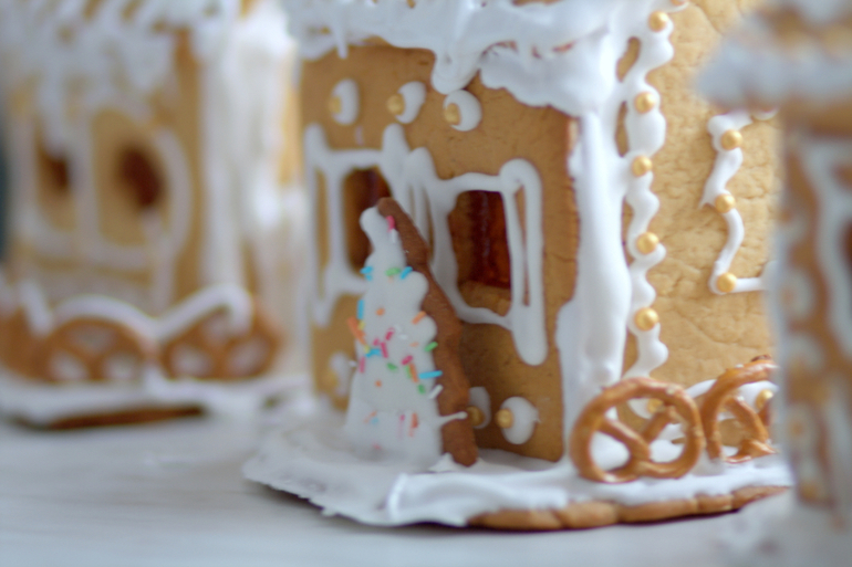 Весь процесс занял три дня. В первый рисовала шаблоны, замешивала тесто и выпекала заготовки. На второй день с утра украшала детали айсингом и вечером собирала домики (без крыши). И на третий день - устанавливала крыши и декорировала. Уф! Но дело того стоило...