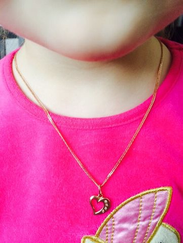 Маша, глядя на украшения, тоже выпросила себе... Цепочка была подарена бабушкой позапрошлым летом, а кулончик из моих запасов. Получился отличный тематический комплектик. Снимать отказывается теперь....