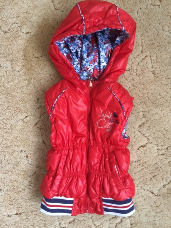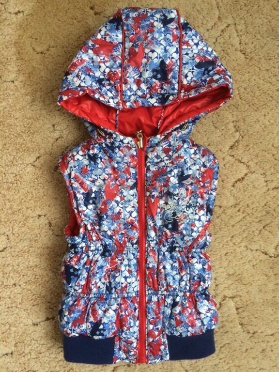 Жилет Sweet Berry. Двусторонний . С капюшоном (не отстегивается, но регулируется). Очень яркий и красивый. Маркировка 104 см. Лучше на 98-100.