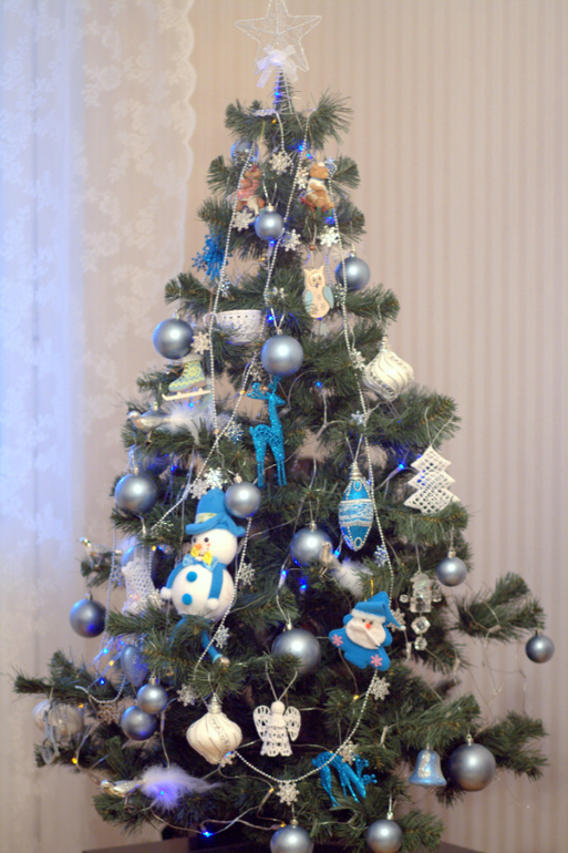 В этом году Елочка нарядилась у нас в бело-сине-серебристых тонах)))
