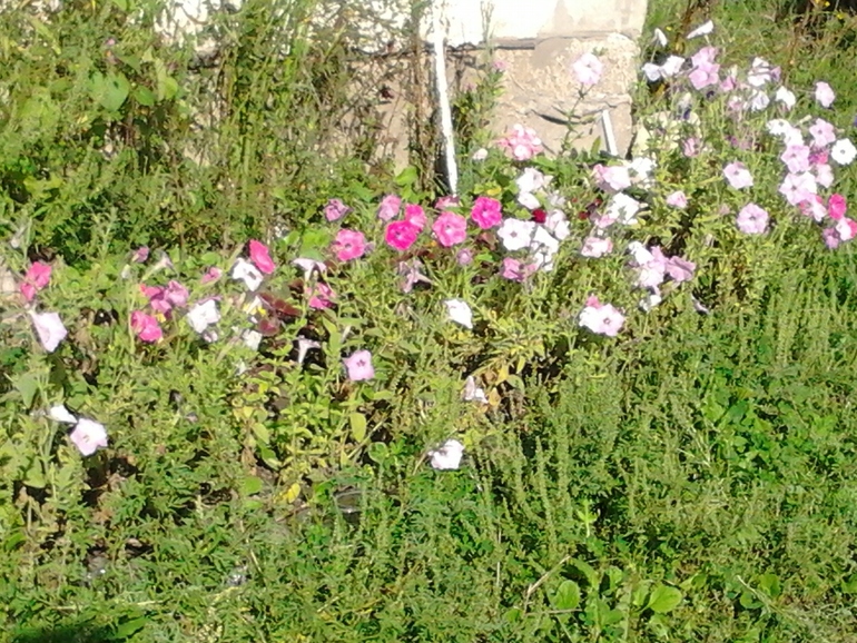 Это мой опыт выращивания Петунии удался. Вдоль всей, вновь сооружённой мной, клумбы, огороженной стеклянными бутылками (амброзия сейчас их скрыла. Уже скосила) Петуния цвела до заморозков. А аромат какой был!!!! Особенно к вечеру.