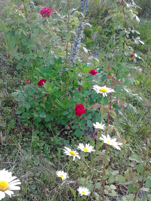 Люпин отцвёл, розы и нивяник