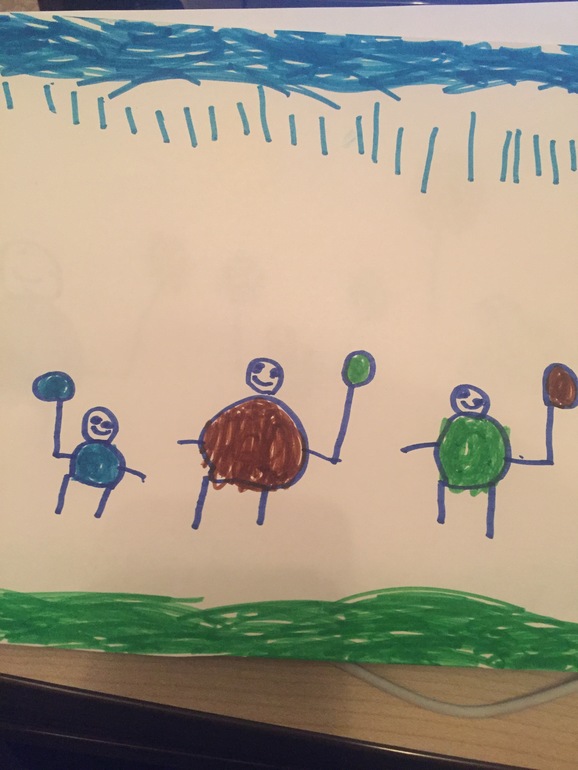 Мы гуляем под дождем, первый это Матвей, у него в животе вода)))) потом папа у него котлетка)))) ну а у меня в животе брокколи)))) вот так ребенок нас всех видит.