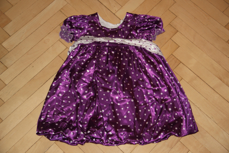 35. Атласное платье баллончиком Mandarinaland, размер 86, (справа на груди пятнышко, отстирается) Цена - 100р.