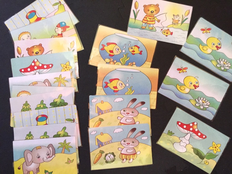 Используем в разных играх: ищем пары, ищем, что пропало, мемори. Для развития речи очень удобно проводить сравнительное описание картинок.