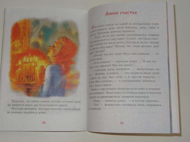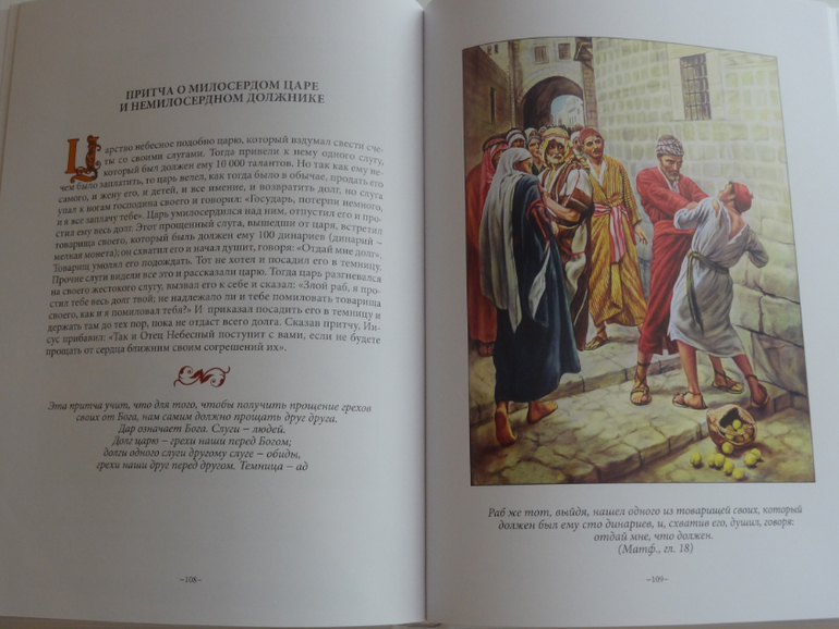 Шикарнейшая книга, большой формат, мелованная бумага, на развороте целая страница с иллюстрацией, вторая страница с текстом. Думаю, что в качестве подарка своим детям и крестникам, это издание будет замечательной находкой.