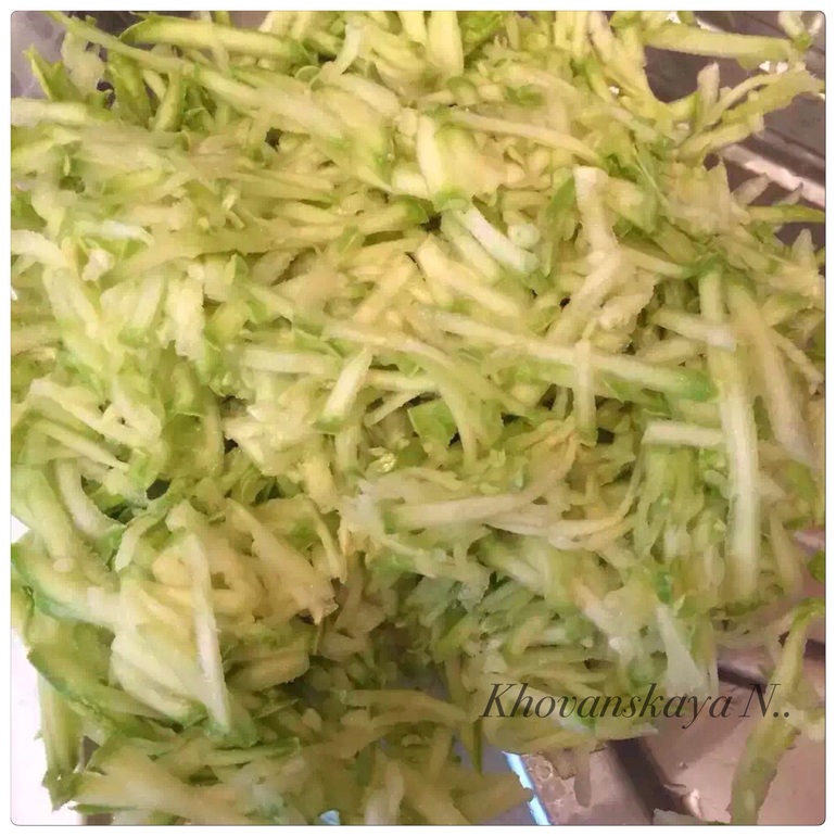 С кабачком немного другие манипуляции: натереть на крупной терке, слегка посолить, дать постоять минут 5, потом отжать очень хорошо и вмешать в куриный фарш