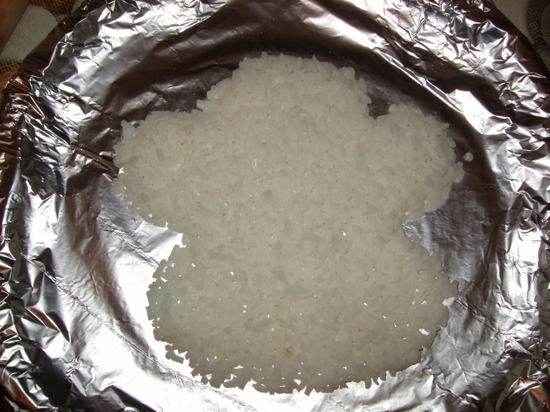 1 слой=отварной рис+майонез