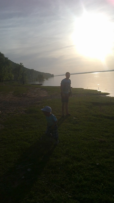 такая красотища на берегу Волги.Коля отвлекся таки от беседы со мной и кидает с мелким камушки в водичку