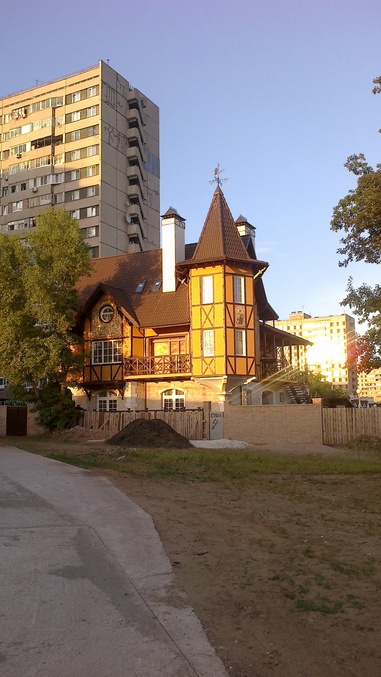 Кстати, о домах..Посмотрите,какой чудесный домик затерялся на берегу Волги среди многоэтажек.Домик моей мечты.Оранжевый...