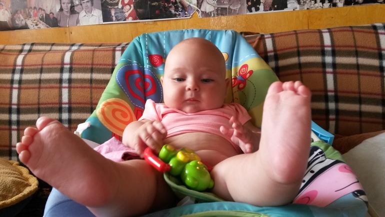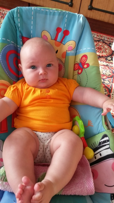 Она прекрасна! Эдакий плюшкоржунчик) и жрунчик тоже) Вес не знаю, кушаем мамино молочко по требованию, практически всегда на сон или во сне, днем, как правило, 4-5 снов. Ночью 2-3 просыпа и под утро (с 6 до 8:30) возня с посасыванием груди. Мама почти всегда рядом (благо, пока в деревне отдыхаем, это возможно. Что будет дальше-посмотрим). Слинг так и не признали( но я не отступлюсь и попробую вновь в Москве. Гуляем много, и это здорово. В последние пару дней стала беспокойно бодрствовать, особенно вечером. И грудь не успокаивает, все канючит и канючит. Возможно, ждем зубы)