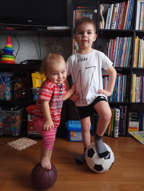 А, в целом, девочка у нас растёт милая, добрая, ласковая... Очень любит меня обнимать, среди ночи может проснуться, позвать меня и снова уснуть только обнимая меня за шею. Брата любит в минуты благосклонности не менее нежно и умильно,. обнимая, напевая "ми-ми-ми-" и поглаживая по голове...