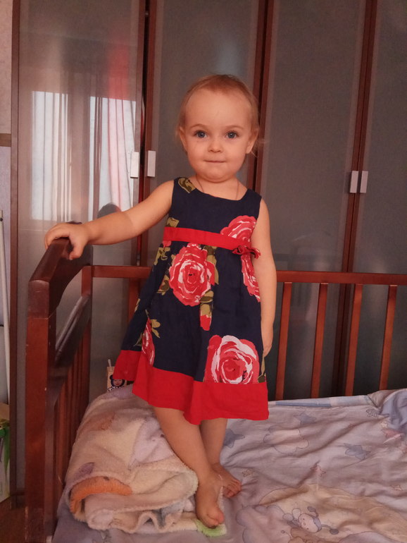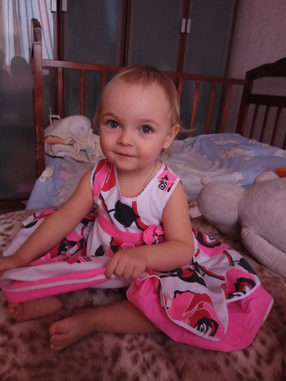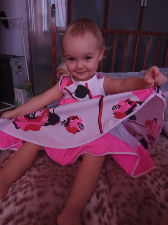 Одеваться , особенно в платья не любит до крайности. Сейчас покажу, как это выглядело в День Рождения. Период позирования в платье занял не больше , не меньше - 40 секунд.