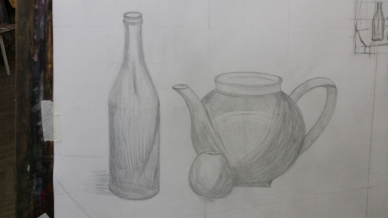 натюрморт очень красив))) вы не поверите что можно нарисовать без линейки))))) Гуашь это лучше чем водостойкая тушь ночью)))))))