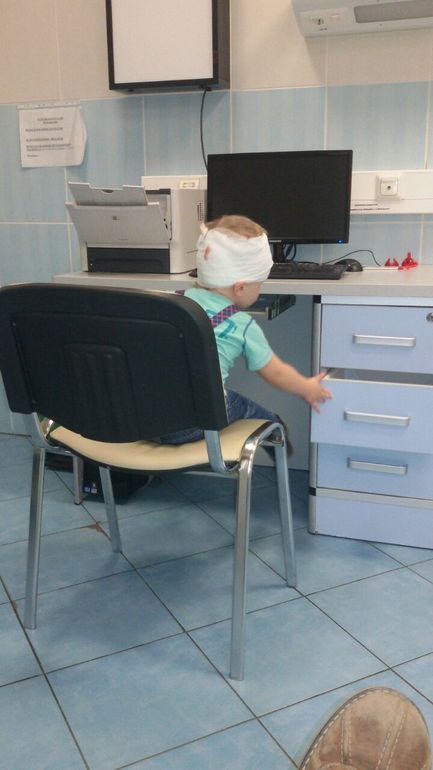 еще 5 мин и я собрала Мася и пакет, Масю забинтовали голову..не пикнул, полный взрослый адекват! вот вам и нытик! Я им загордилась. Врачиха еще подпела - во мужик!!!