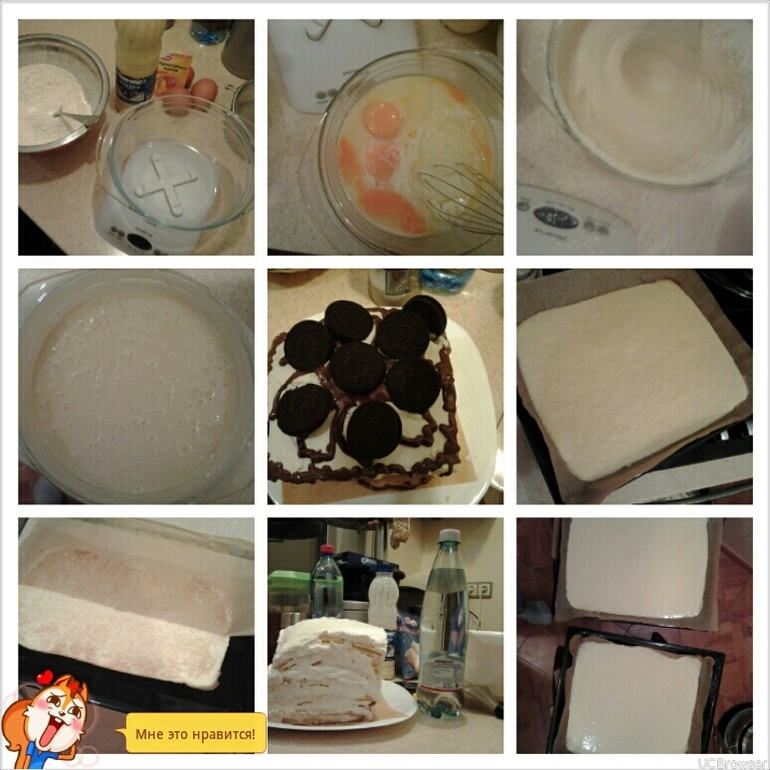 3 яйца, 600 гр сгухи, 240 муки и пакетикиразрыхлителя, выпекать 5-8 минут при 180', я пекла 8., крем 500 мл сливок 33, коробочка сыра карат, совсем чуть чуть сахарной пудры, тк бмсквит ну очень сладким покпзался, а вот мой процесс:-)