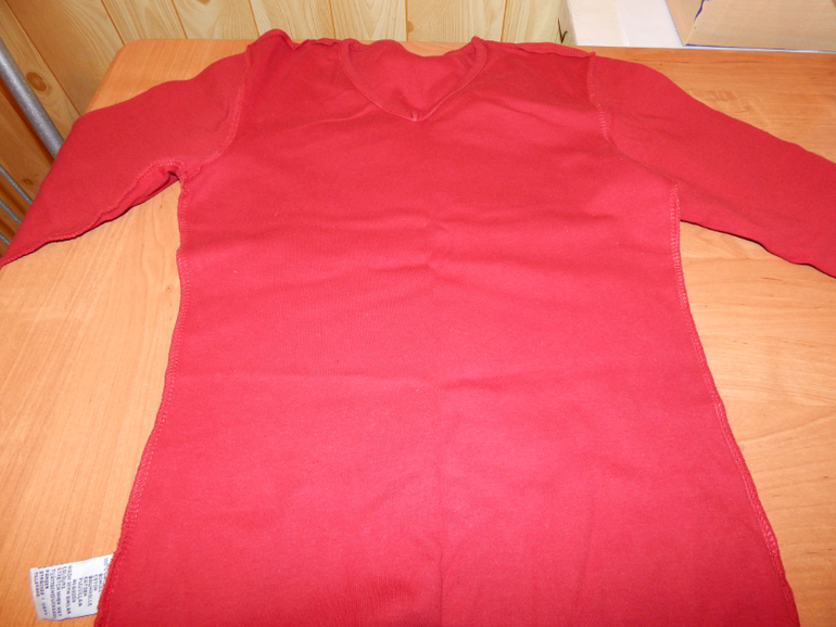 Были у меня три однотипные футболки с длинным рукавом - красная, белая и полосата. Красная и белая в отличном состоянии, полосатая - похуже.