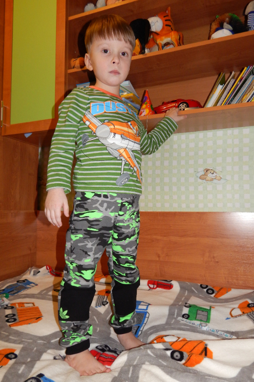 Кто видит недочеты - подсказывайте. Трикотаж шила второй раз. Первыми были спортивки Гусю для тренировок. Жучком владею меньше недели. До этого оверлок и распошивалку видела только на картинках...