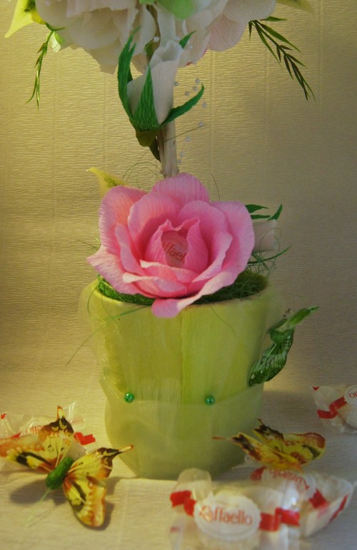 букеты из конфет*топиарии*букеты из шаровКофейный в наличии. Ну и заодно,не прошло и 5 лет осваиваю ручные настройки зеркальной камеры;)))))))) Конфетный: конфеты "Рафаэлло" и "Марсианка" кокос. Тяжеленкий вышел;)))