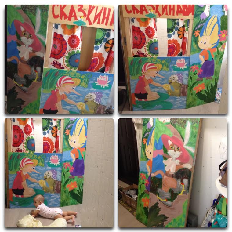 Вот такую ширму-детский театр сделали с одной семьей для наших деток. Они сделали, а я разрисовала, и стоит теперь она в садике.